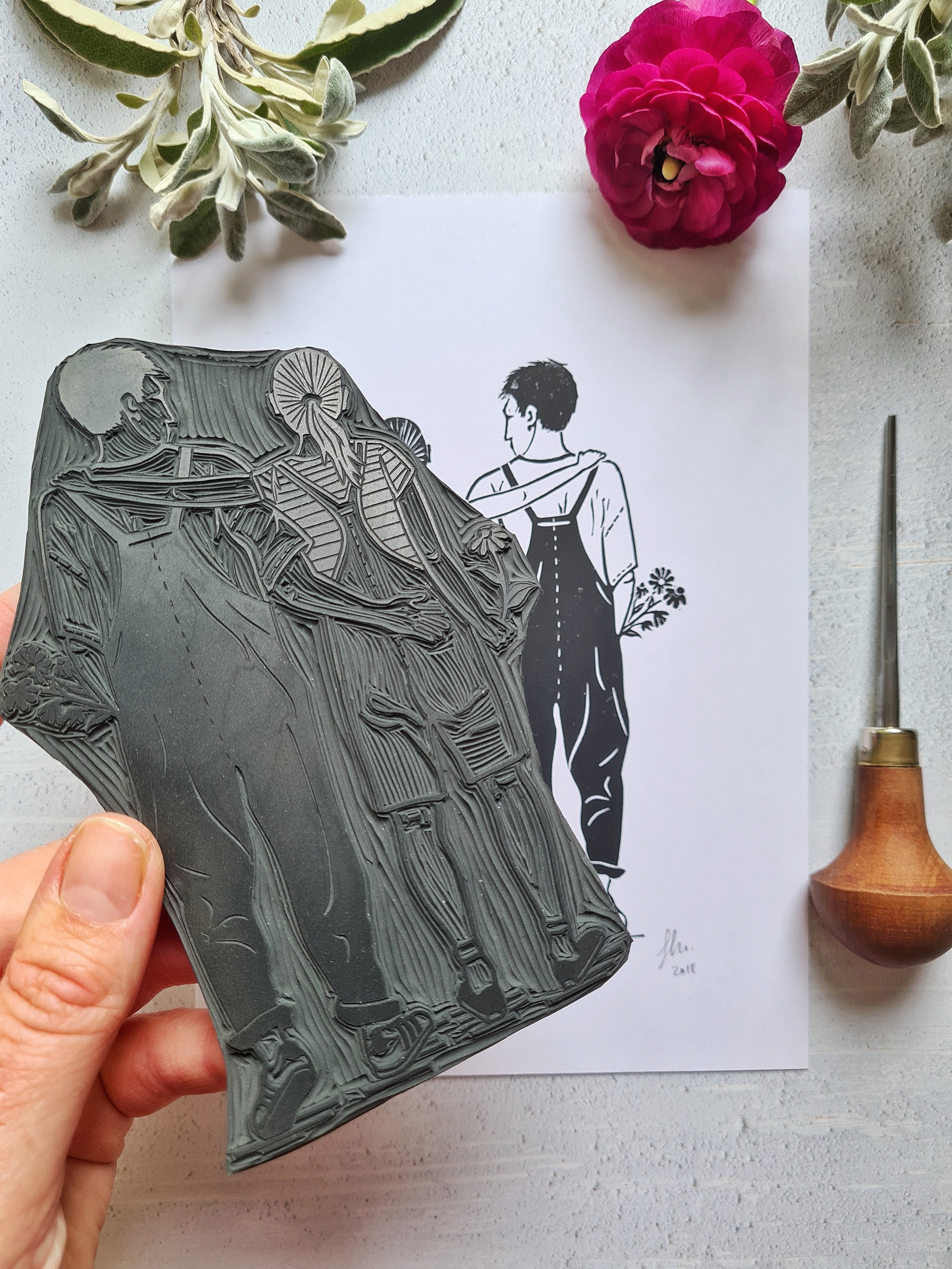 This is an original linocut print (not digitally reproduced) and is signed and dated in pencil by me, the artist. All my prints have been hand carved and printed with care using environmentally friendly Calligo safe wash ink (a non-toxic, oil-based ink) onto smooth, thick white paper.