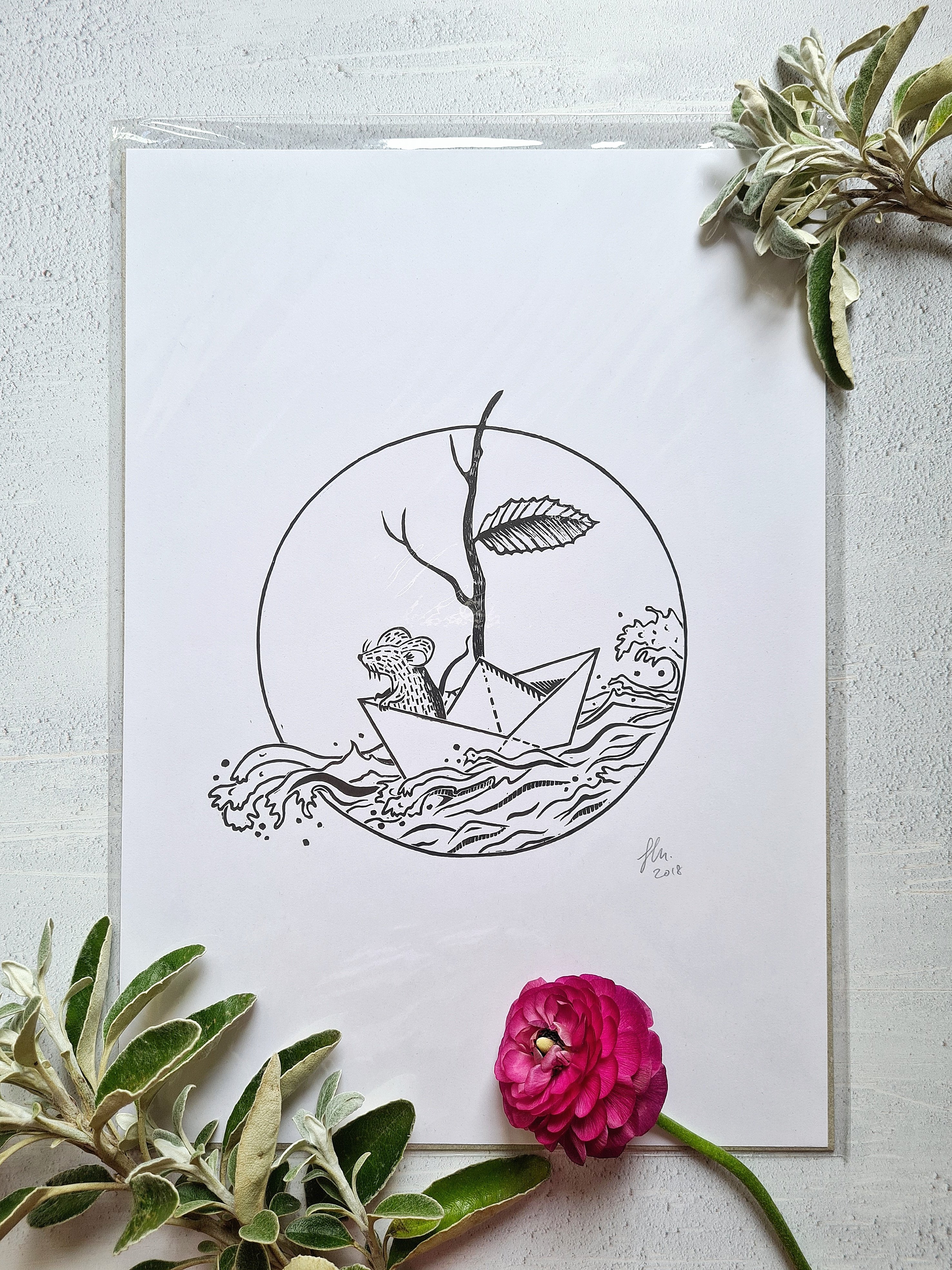 A really striking A4 sized print -this would make a lovely gift to a friend you're separated from - a message from across an ocean so to speak. It could also be a cute baby shower gift or a fun birthday present for a person who loves mice!