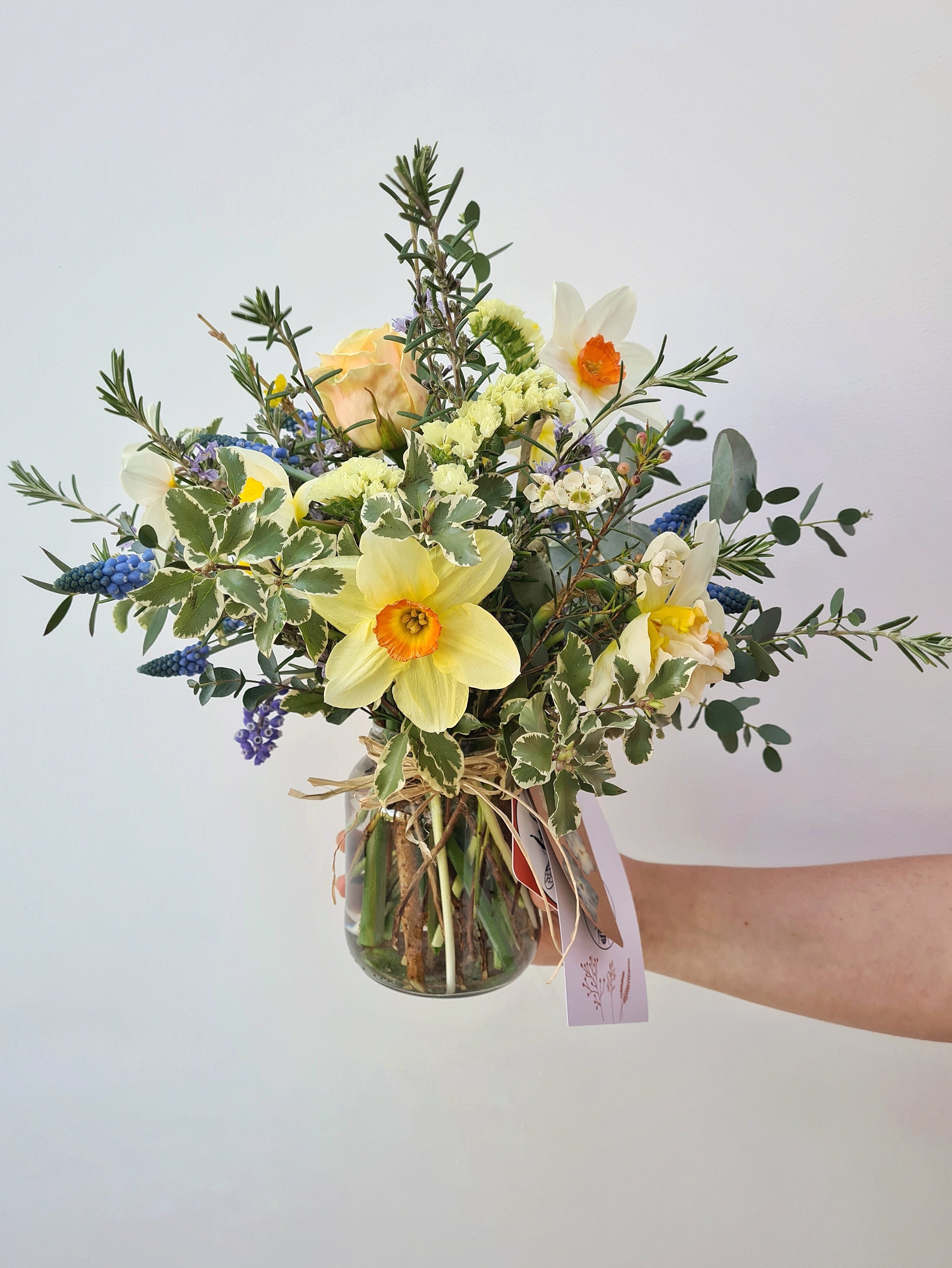 As well as being the slightly cheaper and greener option, this choice gives an unloved jar a new lease of life! These once destitute jars, headed for recycling are thoroughly cleaned and then given a new beautiful purpose - filled with a collection of fresh and dried, seasonal flowers!